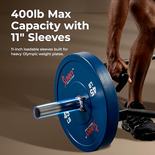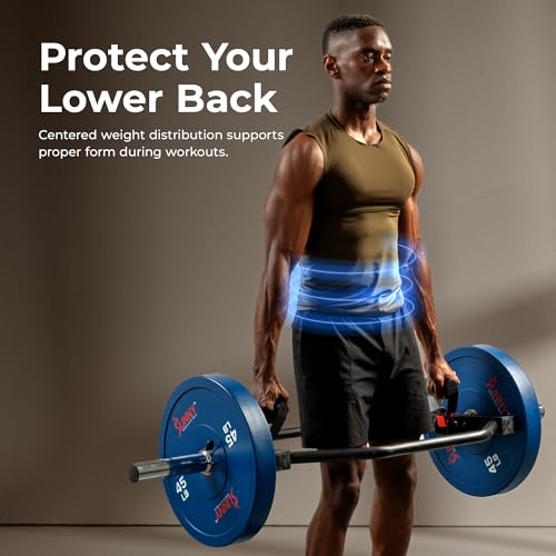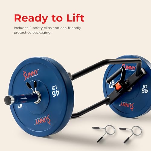 Sunny Health & Fitness Strength Training Olympic Hex Bar Barbell, High Load Capacity, Swivel Handles, Safety Clips, Knurled Handles for Deadlifts, Shoulder Presses, Shrugs, Back Rows, Weightlifting
