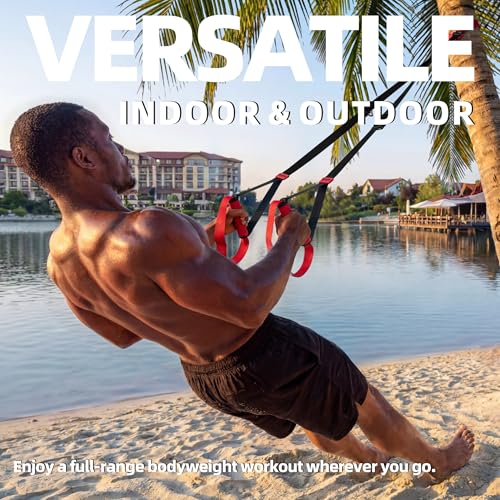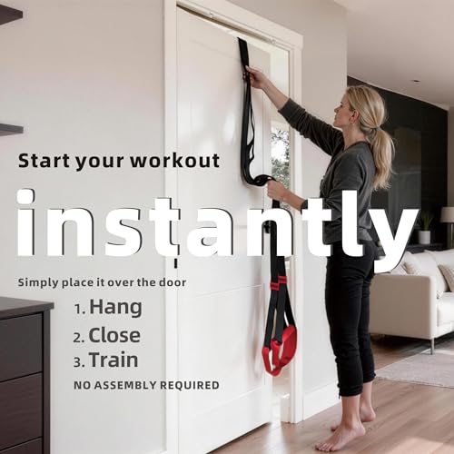FULL-BODY WORKOUT FOR ANY FITNESS LEVEL: Turn any doorway into a complete training station. Perform rows, squats, presses, planks, lunges, curls, and hundreds of bodyweight exercises using adjustable resistance straps. Ideal for strength, HIIT, core stability, functional training, and overall conditioning. Great for beginners to advanced athletes seeking a compact, portable home gym solution.