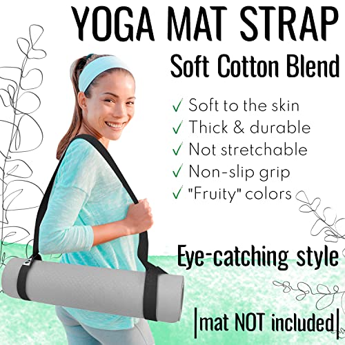 YOGA MAT STRAP: Color: BLACK. Length: 64 IN. Material: Cotton Blend (polycotton). Skin-friendly. Non-slip grip. [MAT NOT INCLUDED]
