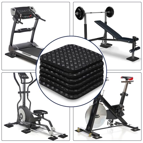 TOBWOLF 6PCS Treadmill Mat Pads, 4″ x 4″ x 0.2″ Double-Sided Non-Slip Exercise Equipment Mat for Floor Protection, High Density Silicone Anti Vibration Pad for Treadmill, Walking Pad, Exercise Bike