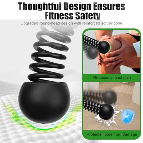 ✅Protecting Your Safety During Exercise : Upgraded to a thick soft silicone round head at the top to cushion the elasticity during exercise, it is not afraid of bumps or damaging floors and walls, ensuring the safety of your exercise process. In addition, it comes with safety wrist straps that can be hung on the wrist to prevent accidental dropping during exercise, and can also be hung on a hook for easy storage.