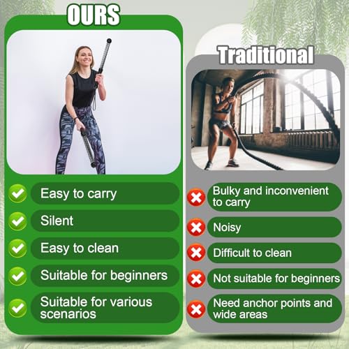✅Exercise Anytime, Anywhere: Compared with traditional battle ropes, this cordless battle rope does not require a wide space and anchor fixation, and there is no noise during the swinging process. Allowing you to exercise anytime, anywhere without being limited by time and location.