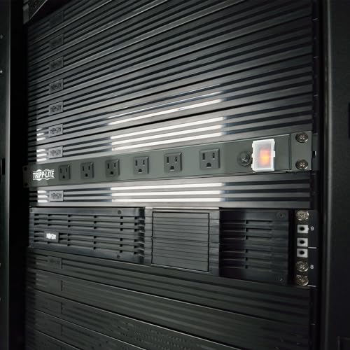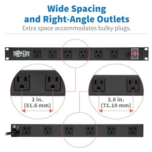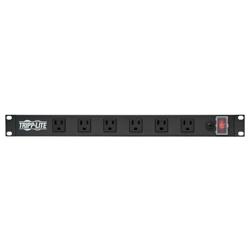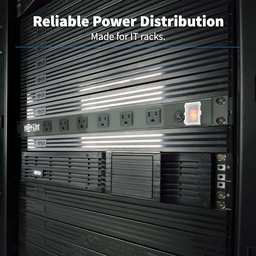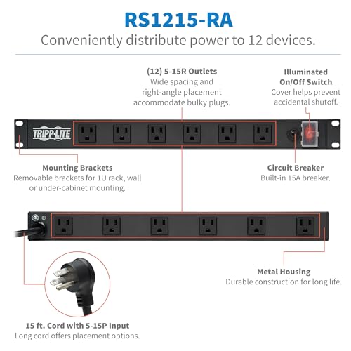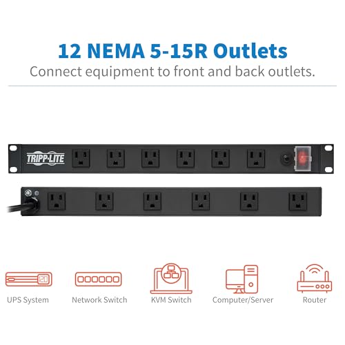 Tripp Lite 12-Outlet Rack Mount Power Strip PDU, Six Front & Six Rear Facing Outlets, 15A, 120V, 15ft Cord with Right-Angle Plug, Horizontal 1U Rack Mount, Black