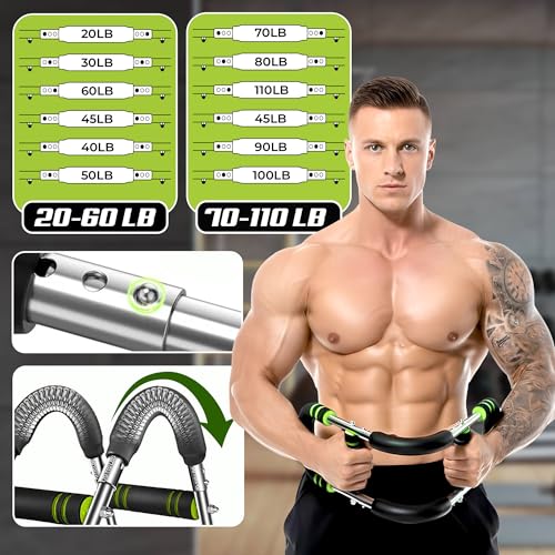 Twister Arm Trainer, Adjustable 12 Resistance Levels, 20-110 Lbs with 4-Springs, Twister Arm Workout Bar for Upper Body Exerciser and Chest Workout Equipment, Portable Home Gym Chest Trainer
