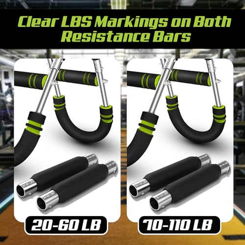 [ 12-Level Adjustable Resistance ] – Train smarter with 4 springs offering 20–110 lbs resistance. This adjustable twister arm workout bar suits beginners to advanced lifters for lasting progress.