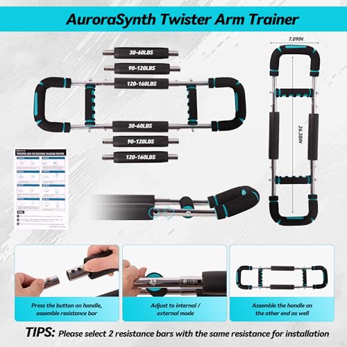 🔥 [ADJUSTABLE 6-LEVEL RESISTANCE TRAINER] – Our twister arm workout equipment for men and women includes 3 sets (6 spring workout bars) with different resistance, which can form 30/60/90/120/160-pound 6 stage resistance exercise. Easily adjust intensity to match your fitness goals from light warm-ups and rehabilitation training to advanced strength and muscle building. Suitable for all fitness levels and body types.