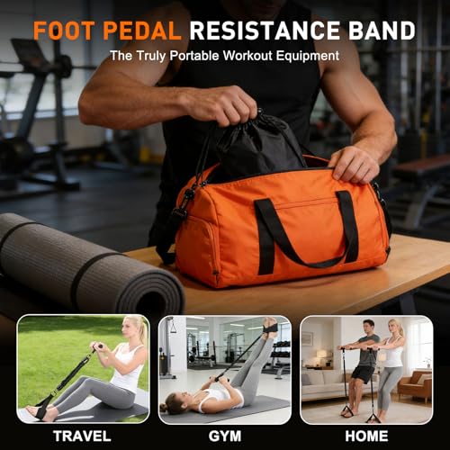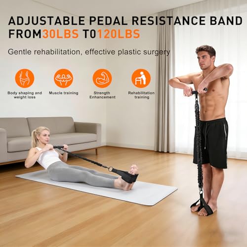 Adjustable Resistance Bands: Unlike fixed-resistance 8 or 4 tube resistance bands sets, our pedal resistance band with handle customize your challenge: use one 30LBS bands for effectivebody shaping, stretching, and physical therapy, or combine both for a powerful 120LBS strength session. This adjustable foot pedal resistance band perfectly suits everyone, from beginners focusing on Abs and arm definition to athletes demanding intense leg and back workouts.