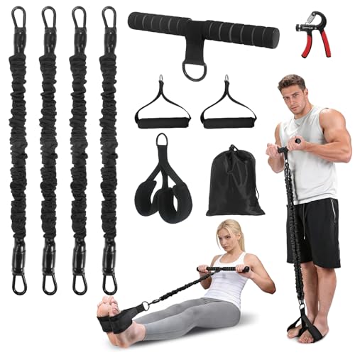 Upgraded Multifunction Pedal Resistance Band with Handle, 4 Tube Adjustable Tube Foot Pedal Device Puller Exercise Bands, for Abs Arm Leg Waist Workout, Sit Up Fitness Equipment for Full Body Training