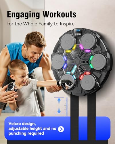 EASY TO INSTALL: Wall-Mount in Minutes—as a boxing wall punching pad, so hits land true. The boxing music workout machine comes with double-sided tape or velcro, allowing for easy installation without the need for drilling, and is space-saving. Its adjustable height makes it suitable for both adults and kids, making it the ideal addition to your home, apartment, or small gym