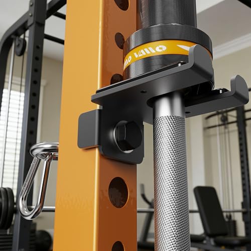 VAIIO 2-in-1 Olympic Barbell Holder and Resistance Band Anchor for 3×3 Power Racks, Fits 5/8″-1″ Holes, Heavy Duty Steel Bar Storage Hanger with Protective Padding