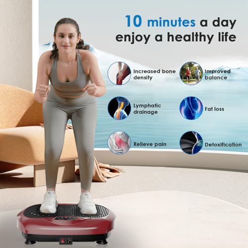 Vibration Plate Exercise Machine – Whole Body Workout Vibration Platform Lymphatic Drainage Machine for Weight Loss Home Fitness with Resistance Bands Remote