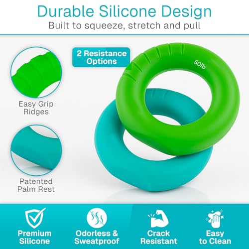 Vive Hand Strengthener Grip Ring – Forearm Ring Hand Exercisers – Silicone Squeezer Gripper for Muscle Strengthening Training Tool – Arthritis Finger Physical Therapy PT Kit Trainer (Textured 2 Pack)
