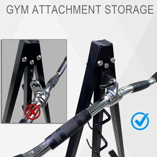 Multi-use Storage Rack: This lat pull down bar organizer can provide a superb organization for cable machine attachments or accessories, which can store various of resistance bands, lat bars, fitness attachments and other gym accessories