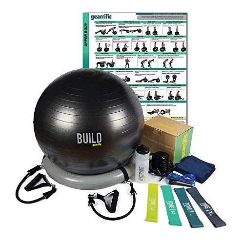Workout Ball Set: Exercise Ball with Resistance Bands & Handles, Poster, Stability Base, Training Bands, Jump Rope, Water Bottle & Gym Towel