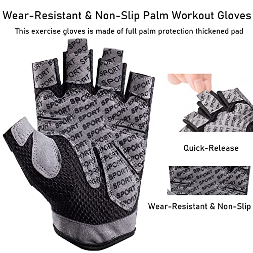 Workout Gloves for Men & Women, Fingerless Breathable & Full Palm Protection Gym Exercise Gloves for Weight Lifting, Fitness, Powerlifting, Cycling