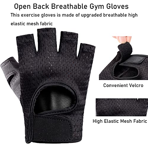 Comfy & Breathable Gym Gloves: This exercise gloves is made of upgraded breathable high elastic mesh fabric, which not only to protect our hands during exercise, but also has the function of high elasticity and breathable perspiration, and the exercise gloves is also designed with open back, this can keep our palms breathable and refreshing in the sweltering summer