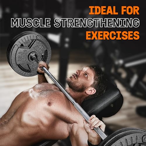 BUILT TO LAST: Olympic weight plates crafted from high-quality cast iron are designed for durability and long-term use, ensuring they can withstand intense workouts without cracking or breaking