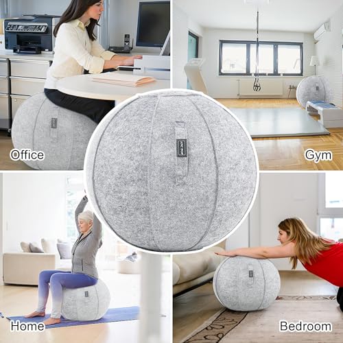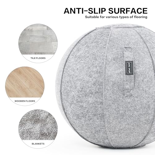 ANTI-SLIP BALL COVER – Our yoga exercise ball has two parts: the ball and the ball cover. The ball cover is made of felt, which is safe to use on wooden floors, tiled floors and blankets. The yoga exercise ball with the cover has a non-slip effect, so it can keep balance on smooth floors and the user is not easy to fall. And the felt cover is easy to clean and can be machine washed directly.